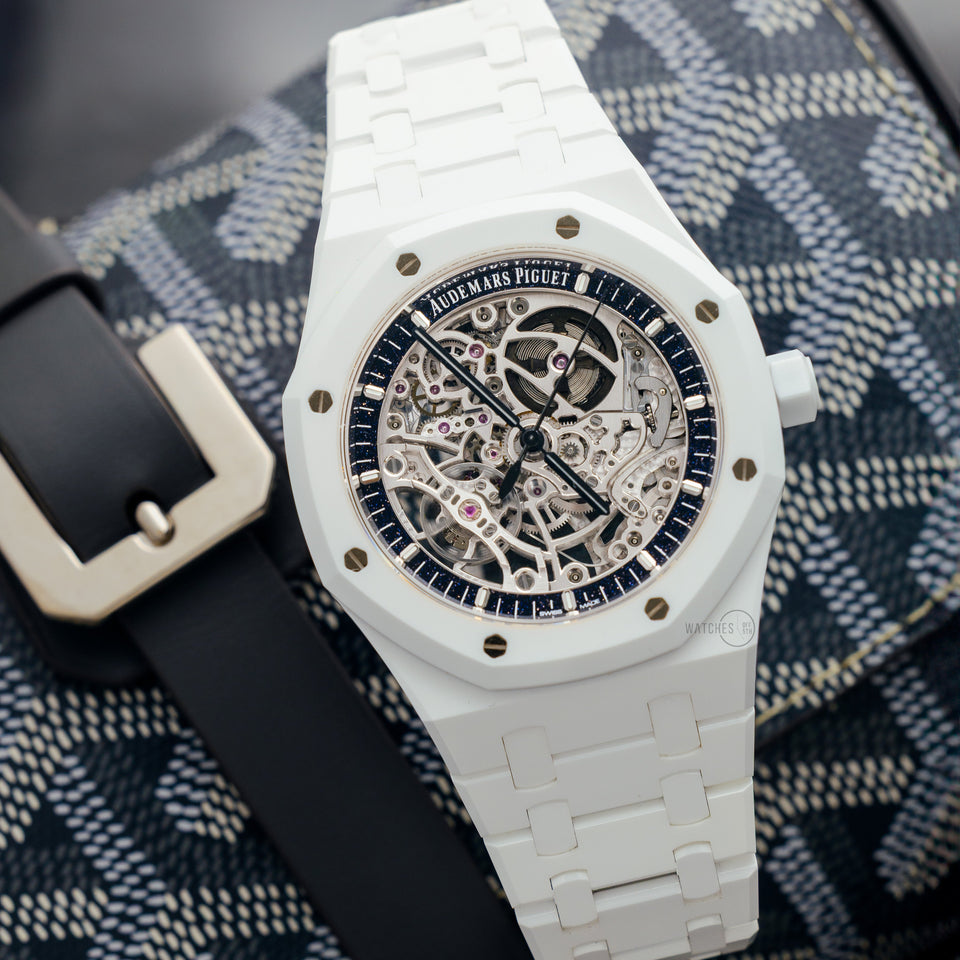 As the reinterpretation of a design icon, the Ref. 5811/1G-001 Nautilus features a case and bracelet in white gold as well as a blue sunburst dial with a black gradation to the periphery.Water-resistant to 120 m and with a slightly enlarged diameter to 41 mm, the watch reflects its affinity with the original Nautilus of 1976 with a two-part case. It also features several subtle technical refinements and patented innovations: a secured fold-over clasp, a new lockable adjustment system, and a new pull-out piece lever system that replaces the split stem.WATCHSelf-winding mechanical movement. Caliber 26‑330 S C. Date in an aperture. Sweep seconds.DIALSunburst blue with black-gradient rim, horizontally embossed, gold applied hour markers with luminescent coating.CASEWhite gold. Screw-down crown. Sapphire crystal case back. Water-resistant to 120 m. Diameter (10–4 o’clock): 41 mm. Height: 8.2 mm.STRAPWhite gold. Patented fold-over clasp with lockable adjustment system.