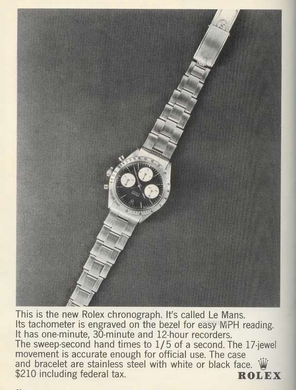 In 1963, Rolex released the new Rolex Chronograph reference 6239 and initially called it "Le Mans." They took out a full-page advertisement to showcase this new model the following year.